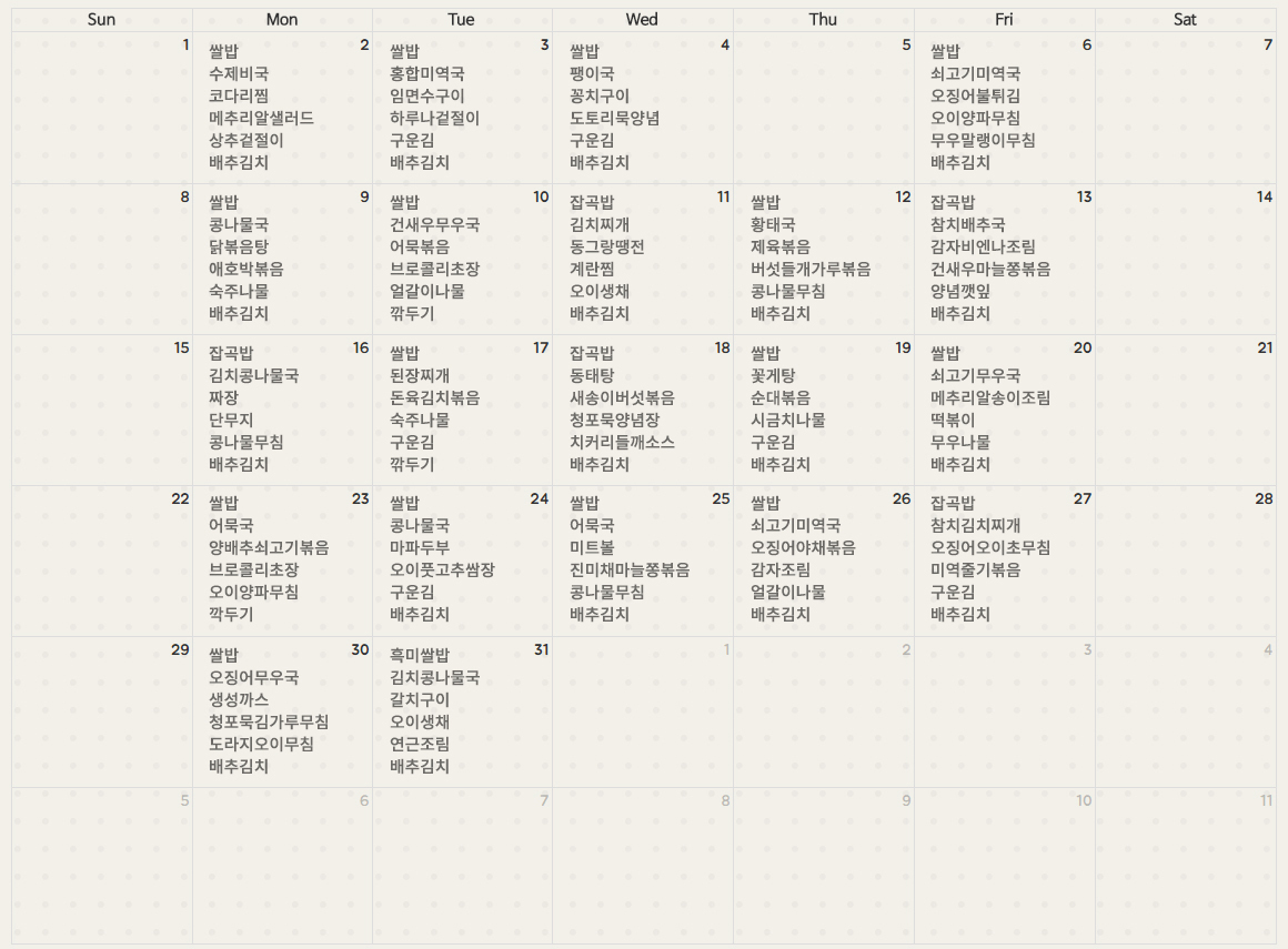 5월 식단표 안내입니다.